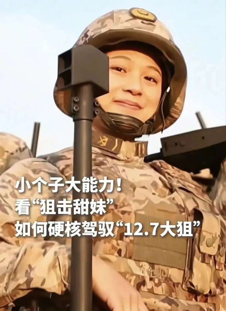 这位00后女兵 长相娟秀甜好意思 笑起来眉眼弯弯尽是青娥元气 被战友们亲切地叫作念“狙击甜妹” 今天 咱们全部走进“狙击甜妹” 刘江涛的故事 “12.7是什么?” 12.7指12.7毫米口径 这里指 12.7毫米反器材狙击步枪 (俗称“12.7大狙”) 可打击坦克车、直升机 还有工事等高价值决议 是单兵装备里的“大杀器” 有多大呢? 这是男兵拿在身上的形状