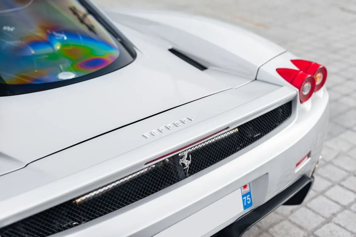 这台2004年出厂的Enzo结巴了Rosso Corsa红、Giallo Modena黄、Nero黑等经典原厂配色旧例,身披极为额外的纽北银金属漆,是各人9台同色车中的一台,更是英国市集惟逐一台搭配红色真皮内饰的车型,同期亦然各人仅5台“纽北银+红内”组合的Enzo之一,稀缺性了然于目。