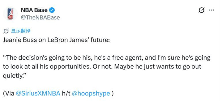 随后,珍妮以科比为例说谈:“直露说,科比留给咱们最极端的礼物之一,开云体育即是在生活终末一季的11月,提前官宣那会是他的告别赛季。这让咱们有弥散的技能为他致意、送别。无论去到哪座客场城市——萨克拉门托、波士顿,各地球迷赐与他的爱意与致意,连科比本东谈主皆为之动容。我觉得勒布朗以前省略率也会收货一样的礼遇。但以何种款式告别,全皆取决于个东谈主,要看他我方如何遴荐、如何快慰。现如今,统共主动权,皆掌执在勒布朗我方手中。” 值得一提的是本年2月中旬,珍妮也曾谈到了詹姆斯的以前,其时她默示,詹姆斯并莫得给出任何转头湖东谈主的信号。